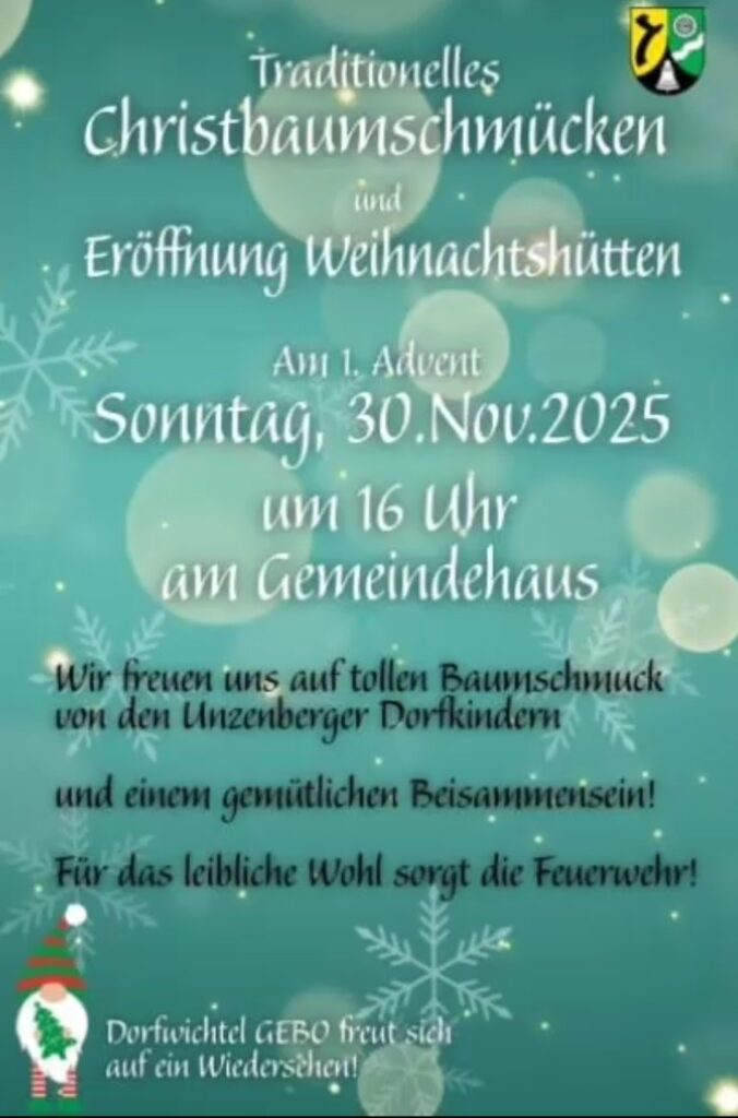 Christbaumschmücken und Eröffnung Weihnachtshütten Sonntag , 30 November 2025