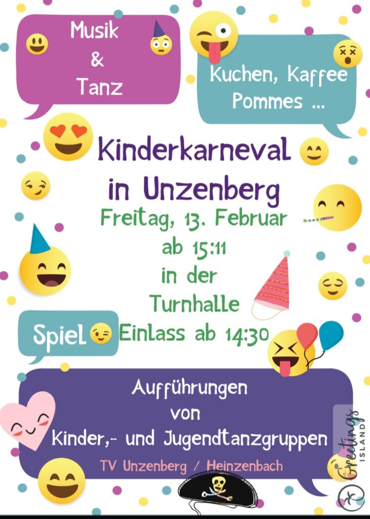 Kinderkarneval am Freitag 13.02.2026 Turnhalle Unzenberg